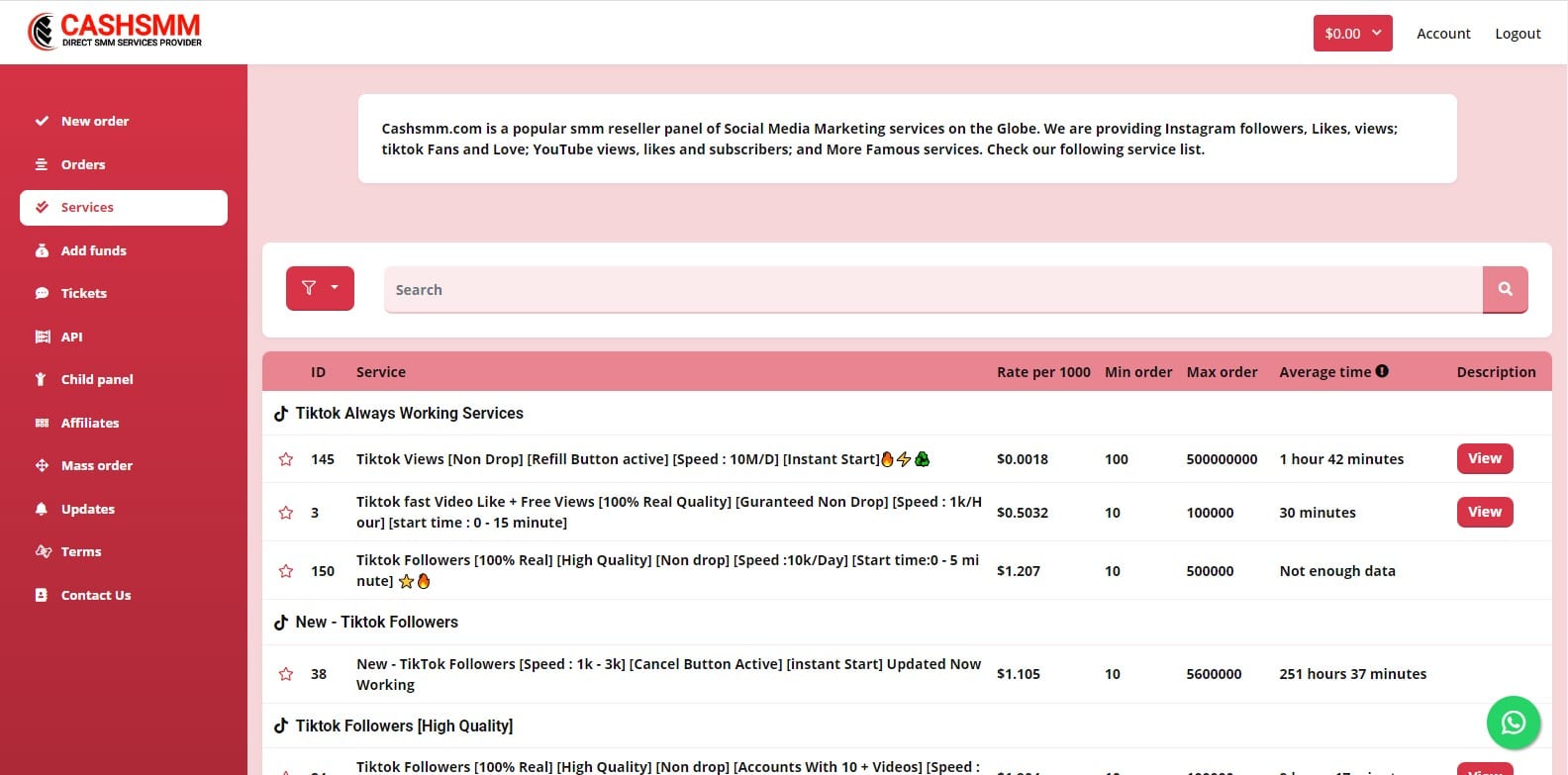 Their TikTok services start at $0.0018 for 1000 views, which is pretty low.