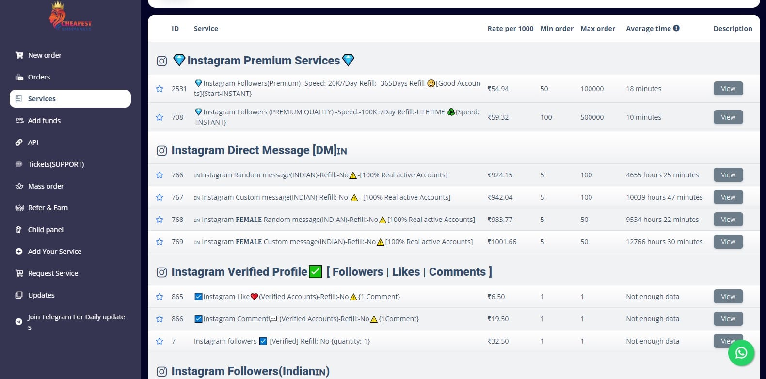 Cheapest SMM Panels offer the best services for Indian SMM users. They specialize in affordable Social Media Marketing across platforms like Instagram, Facebook, Twitter, and YouTube. Cheapest SMM Panels ensure an instant start with features like Indian Instagram Followers at just $0.9757 for a 30-day refill.