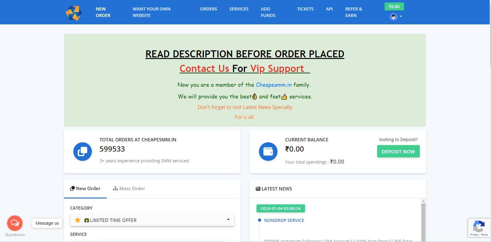In case of any issues, LIVE customer support chat is readily available to assist you. To know more about CheapSMM.IN click on the Visit Panel button or scroll down for more info.