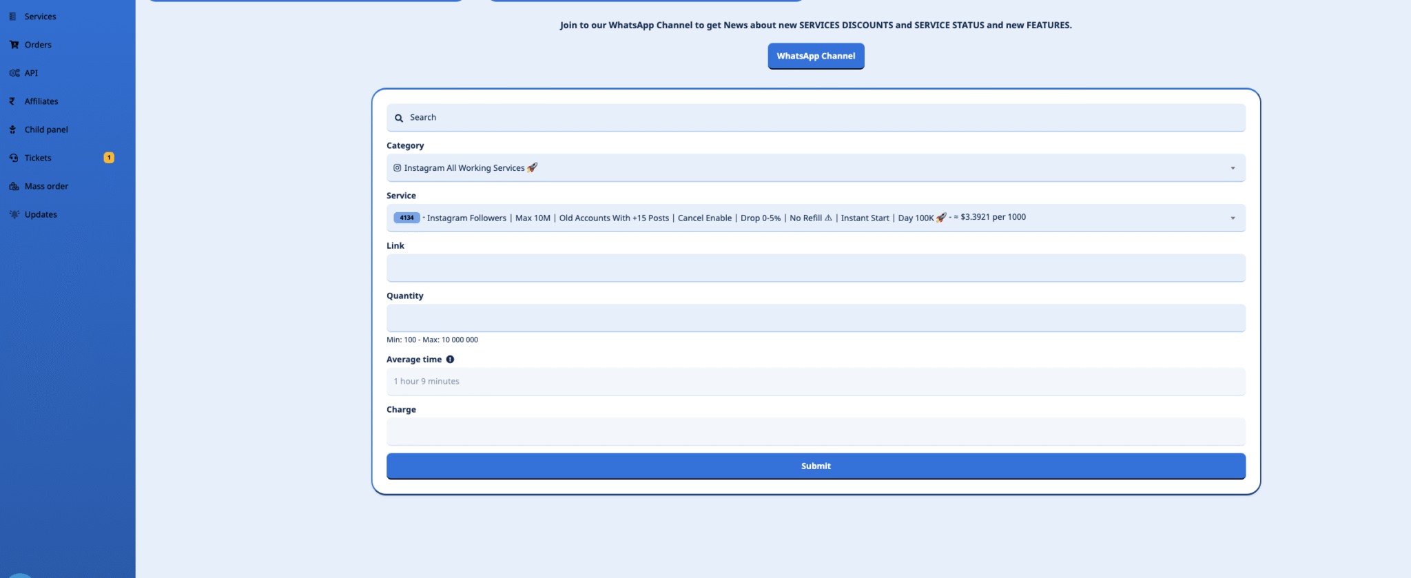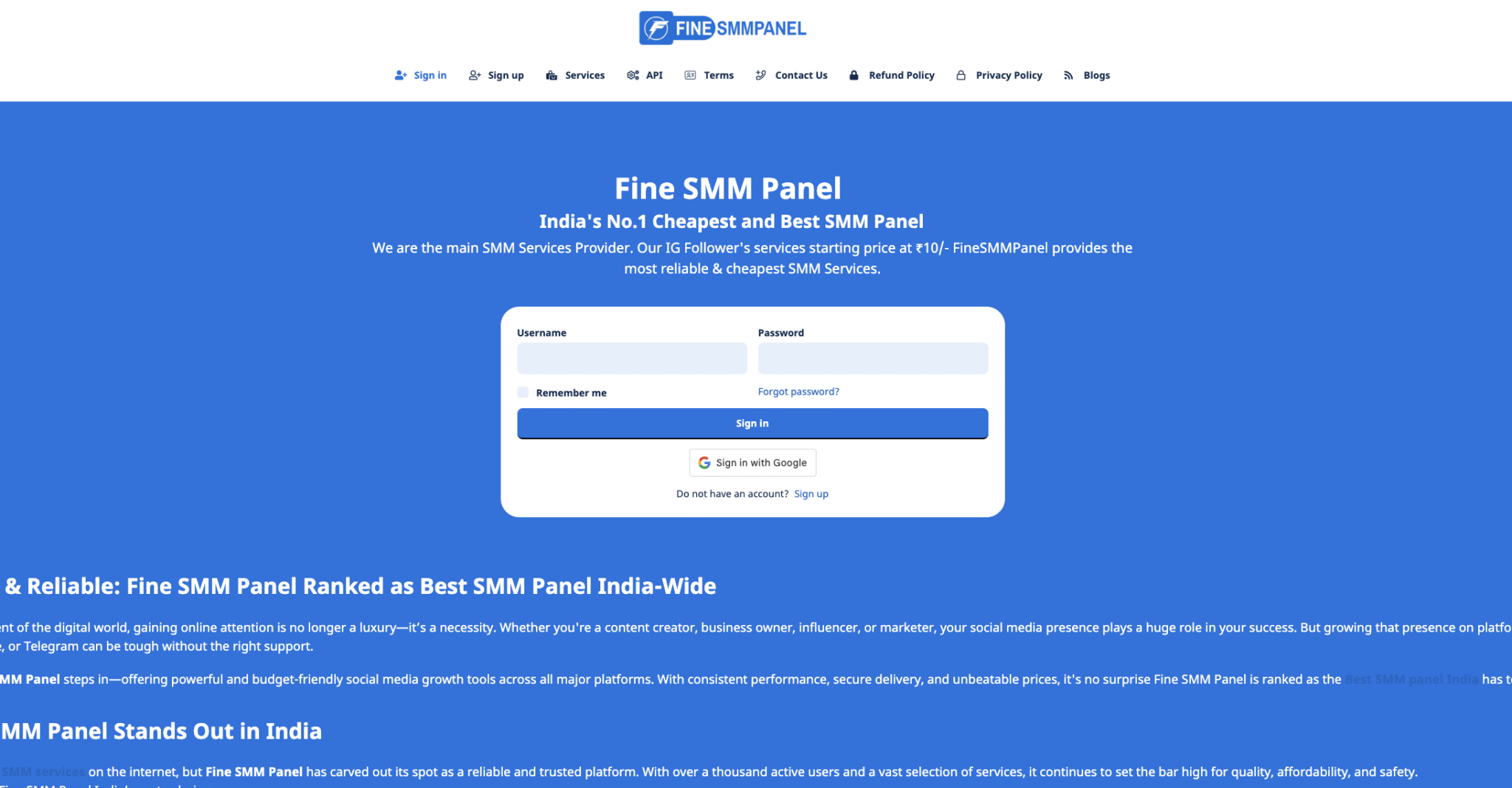 FineSMMPanel is India’s No.1 cheapest and best SMM panel—built for creators, brands, resellers, and agencies that want fast, reliable growth without overspending. Getting started is simple: sign up, add funds with secure payment options, choose your services, and track orders in real time. With Instagram followers from just ₹10, the catalog spans Instagram (followers, likes, Reels views, comments, story views), YouTube (subscribers, watch time, likes, comments), Facebook (page/profile followers, reactions, video & Reels views), WhatsApp (channel members and reactions), Telegram, Twitter/X, and more. Expect high-retention delivery, clear ETAs, and a clean, user-friendly dashboard.