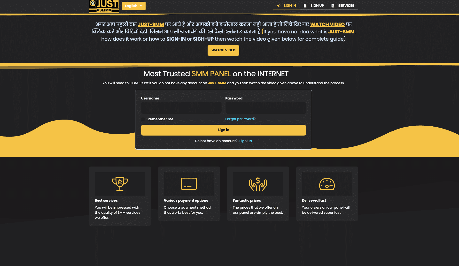 JustSMM is a trusted SMM panel built for creators, agencies, and resellers who want speed, scale, and value. New here? Thereโs a step-by-step onboarding video in Hindi/English to help you sign up and place your first order with confidence. Inside the panel youโll find a deep catalog across YouTube (subscribers, watch-time/monetization packs, Shorts views, likes, comments, live-stream viewers & reactions), Instagram (followers, Reels/video views, likes, comments, Story views/polls/reactions, reach, saves), Facebook (page/profile followers, post reactions, video/reels views, live viewers, watch-time packs), WhatsApp Channel reactions & followers, Twitter/X video views, and Telegram members.