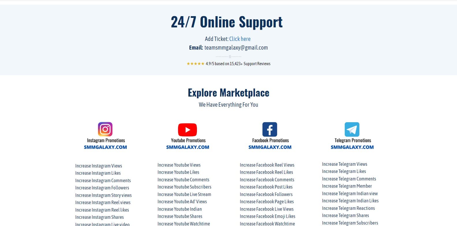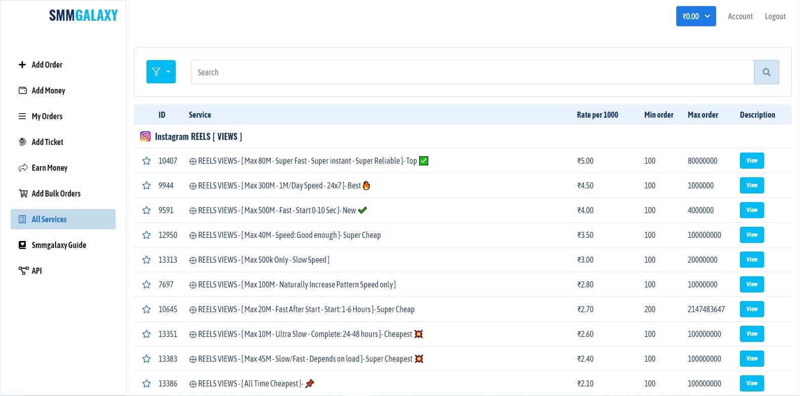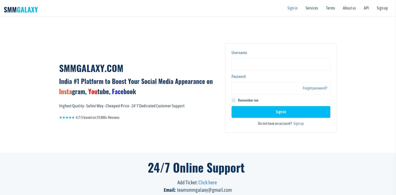 With 24/7 dedicated customer support, SMM Galaxy has a 4.7/5 rating based on 19,888+ reviews. Starting at โน0.20 for Instagram views and โน1.00 for Instagram Likes, it provides a comprehensive solution for social media marketing.