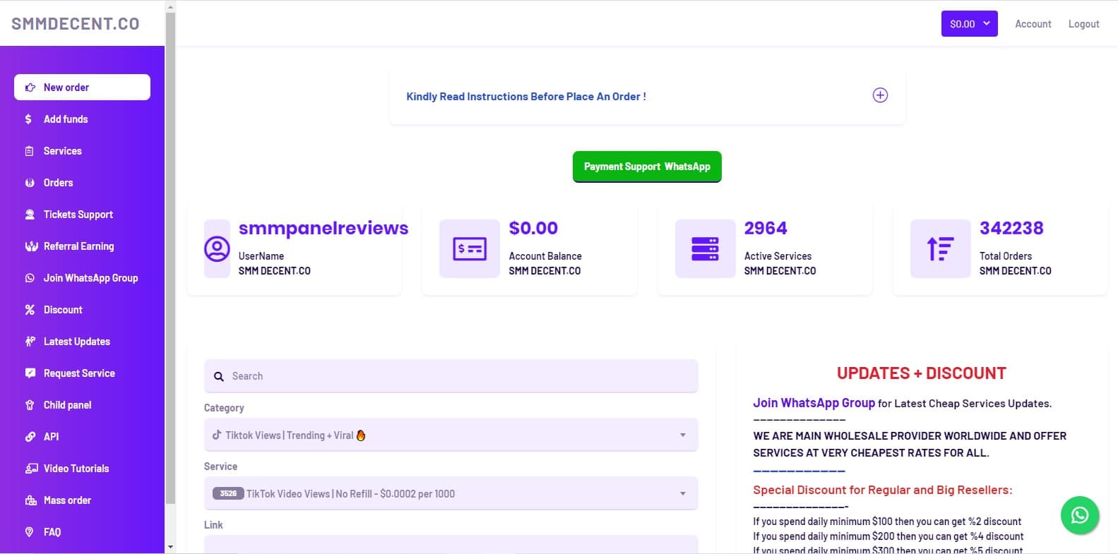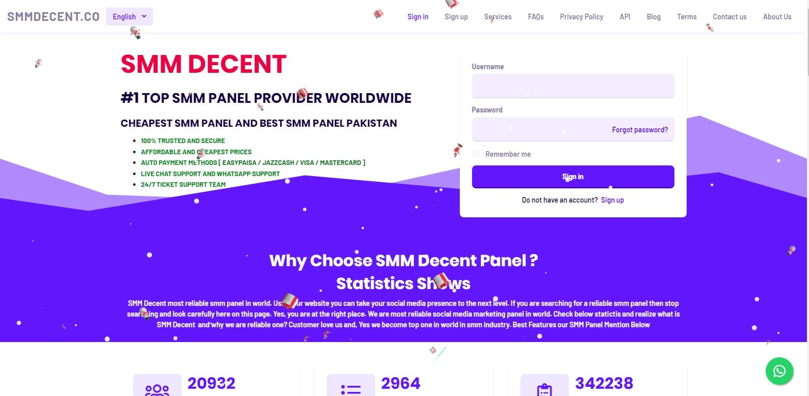 People think SMM Decent.co is really reliable for social media marketing.ย And if you join them, there’s a chance to get a 5% bonus on your deposit and earn a 3% commission by bringing in friends. To know more click on the panel link on the side.