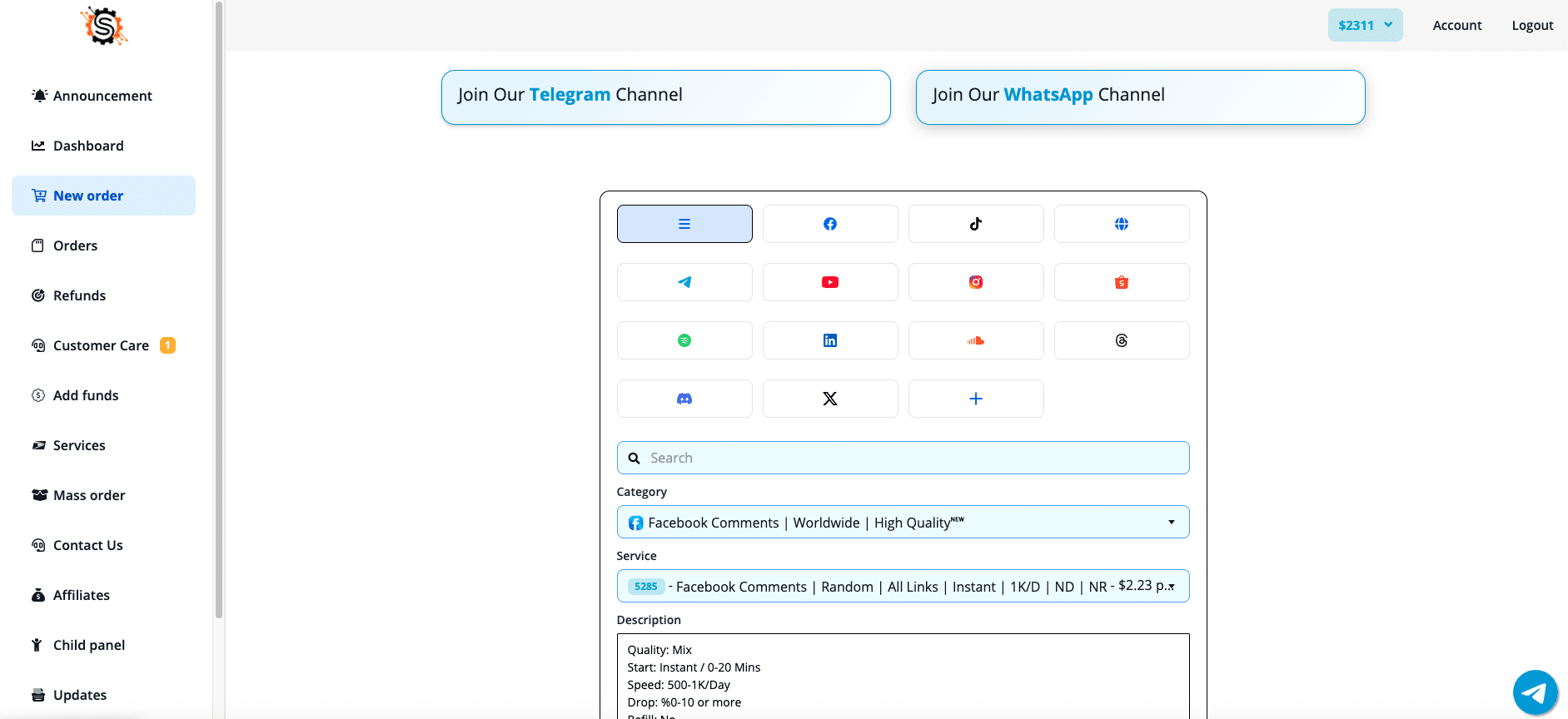 SMMFollowOM suits resellers with API access and bulk options, plus 24/7 support via tickets. Prices start low, from $0.01 for views, but expect variable drops on basic packages. SMMFollowOM updates services often, covering extras like Spotify streams or LinkedIn connections.