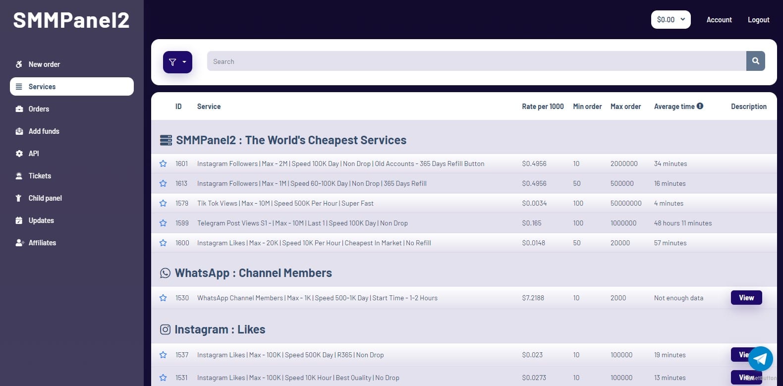 Latest services added on SMMPanel2