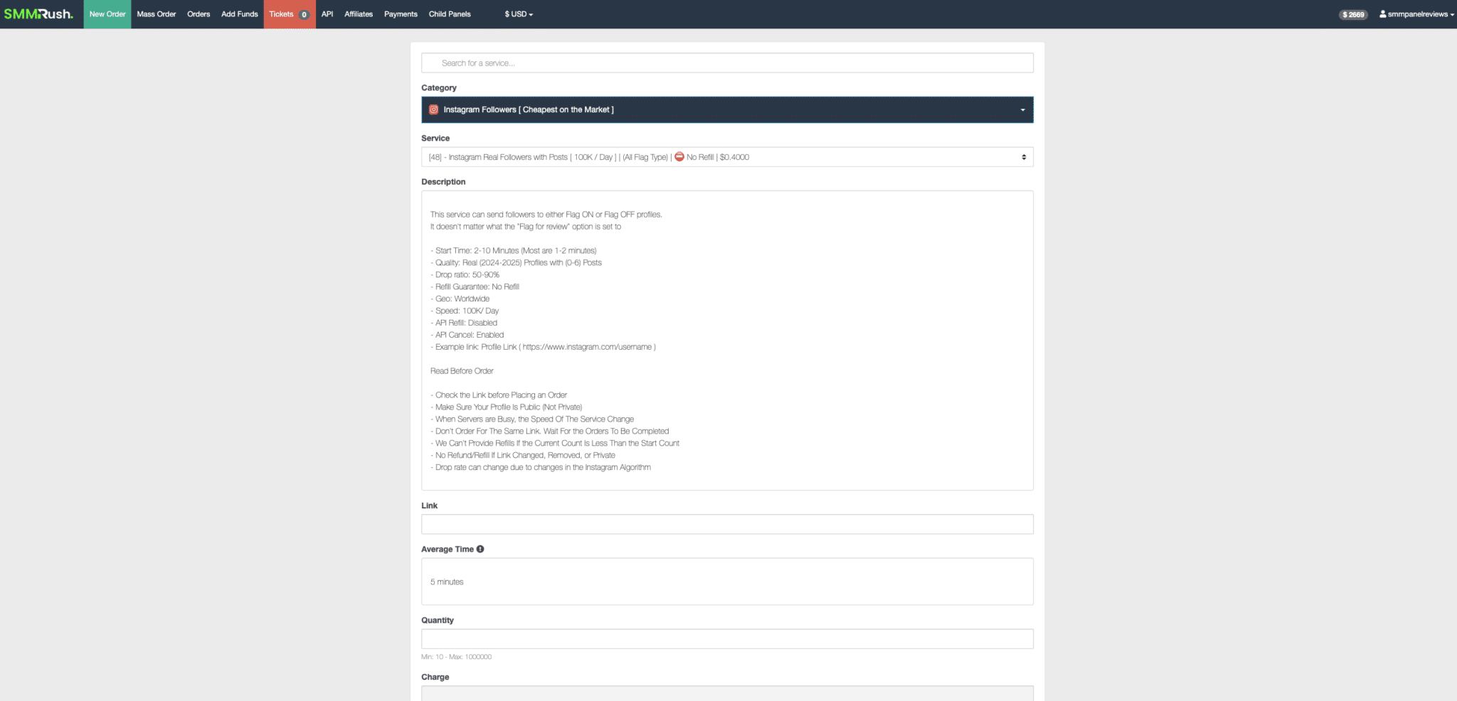 A standout option is its followers service that works with Flag ON or OFF profiles, plus an API-cancel path if a run needs to be halted. Admin support is reachable via WhatsApp, Telegram, and email, which helps when you’re juggling multiple links. Terms are strict: read each service description before ordering, don’t stack orders on the same link, and note that many low-cost services have no refill and variable retention due to platform changes. If you need a lean, Instagram-centric panel with honest specs and direct admin contact, SMMRush fits.
