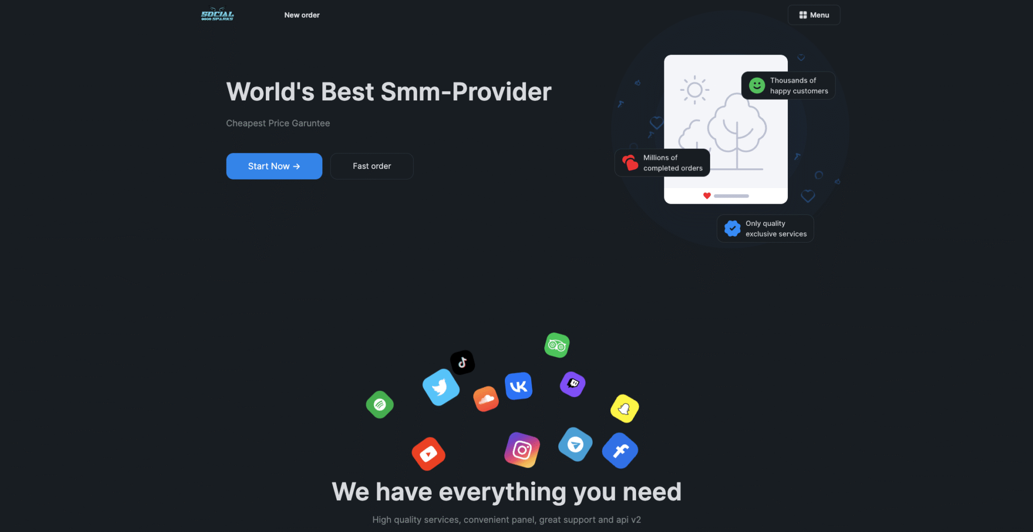 For creators, agencies, and resellers who want a quick setup and precise tracking, SocialSparkSMM is an affordable SMM Panel. There is an easy-to-use menu with New order, My orders, Services, and Help on the panel, as well as API v2 support. Like Instagram followers, YouTube views, Twitter followers, Facebook friends/subscribers, VK likes, and more, you can set up campaign types and then use live counters to see how things are going (e.g., 2,500 of 5,000 delivered).