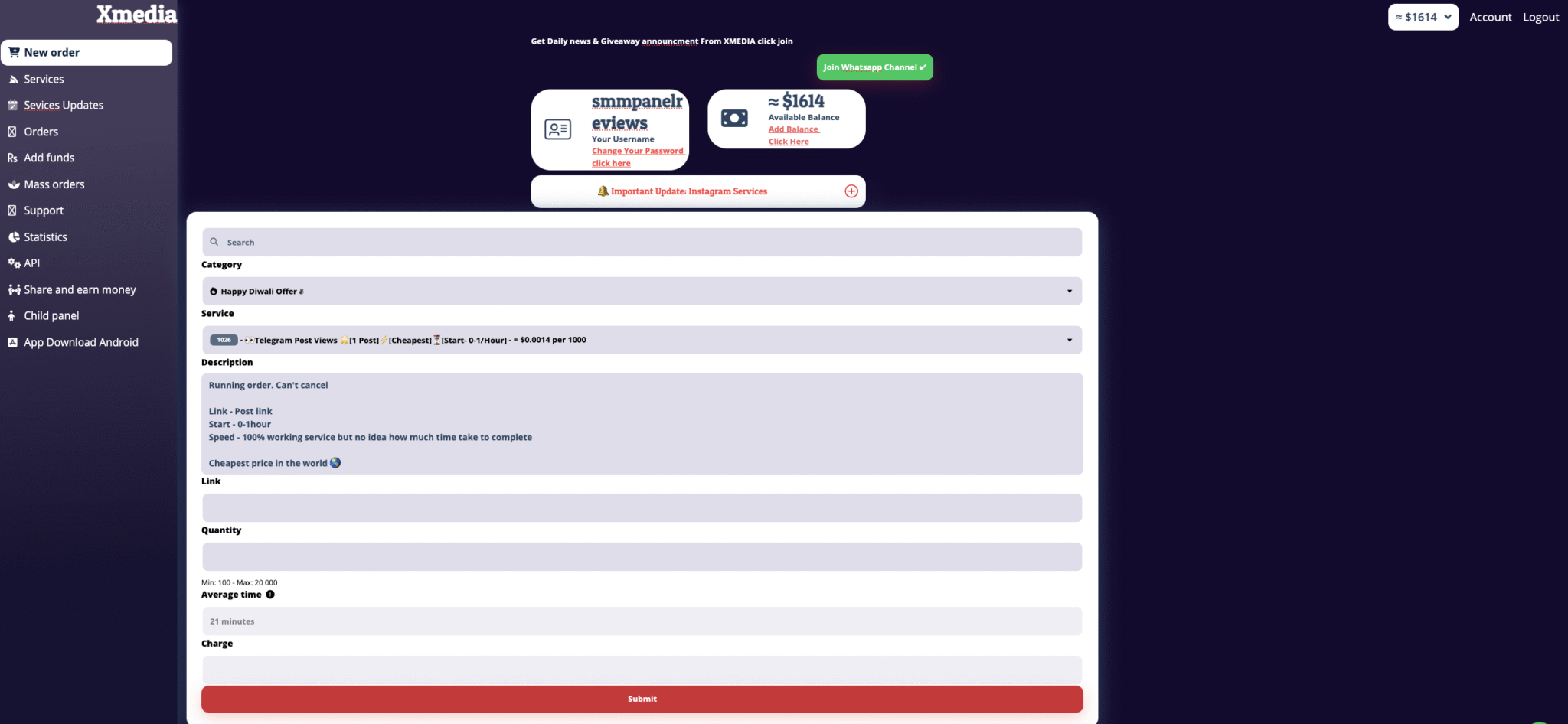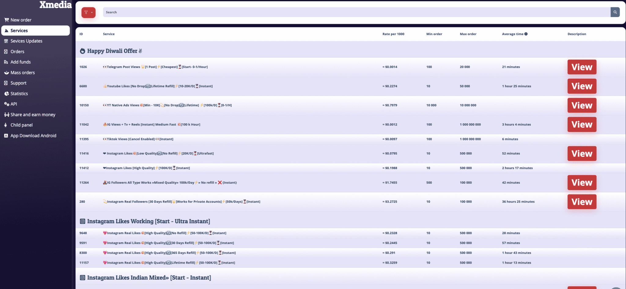 There are 170 Instagram services on XMediaSMM